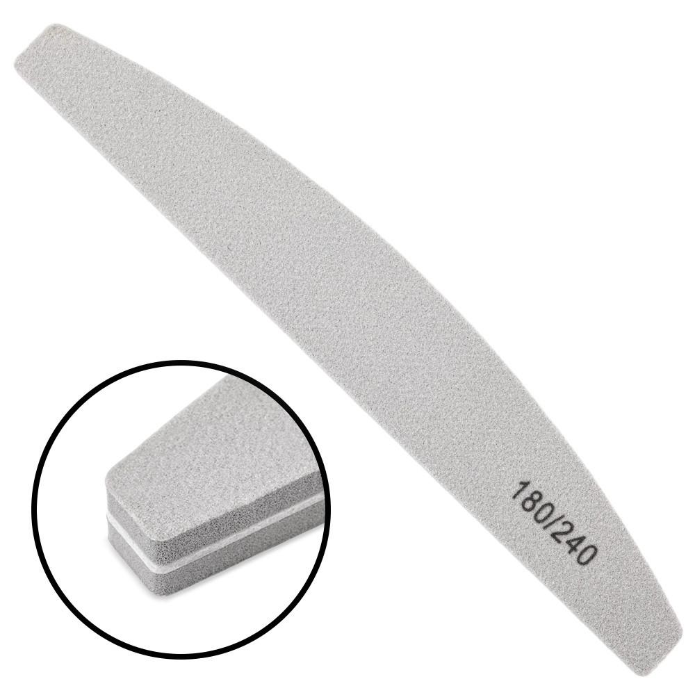 Επαγγελματική λίμα buffer – σε σχήμα μισοφέγγαρου (half moon) με γυαλοκόκκωση 180/240. Ιδανική για φυσικά και τεχνητά νύχια – διαμορφώνει, λειαίνει και τελειοποιεί χωρίς να τραυματίζει.