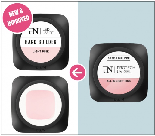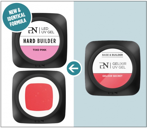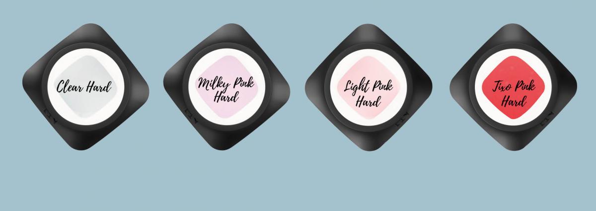 Τα HARD BUILDER gel είναι πολύ σκληρά gel χτισίματος, κάποια συγκρίνονται με το ακρυλικό και επομένως είναι κατάλληλα για επέκταση του νυχιού με φόρμες. Πολυμερίζονται όλα σε λάμπες LED/ UV. Πολυμερίζονται για 60 δευτερόλεπτα στη λάμπα THE LIGHT (LED/CCFL) της ProNails και για 2 λεπτά σε λάμπες UV. Ανάμεσα στα σκληρά gel χτισίματος υπάρχουν κάποια που είναι σκληρότερα από άλλα. Τα σκληρά gel χτισίματος είναι κατάλληλα ως gel βάσης και χτισίματος και εφαρμόζονται συχνότερα πάνω από τα gel βάσης της ProNails (Perfect Base, Clear Base ή Pink Base) για μέγιστη προσκόλληση στο νύχι. Χάρη στην σκληρότητα τους, αυτά τα gel επιτρέπουν τη λεπτή εφαρμογή για πιο φυσικά νύχια. Ta σκληρά gel χτισίματος της ProNails βγαίνουν σε διαφορετικά χρώματα (CLEAR, LIGHT PINK, MILKY PINK) και υφές (TIXO PINK). Έφαρμόζονται και πολυμερίζονται δάχτυλο- δάχτυλο ή τα τέσσερα δάχτυλα μαζί και οι αντίχειρες ξεχωριστά.