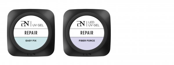 Μερικές φορές οι πελάτισσες χρειάζονται μια γρήγορη επανόρθωση κατά τη διάρκεια της συντήρησης. Σε αυτή την περίπτωση θέλετε μια γρήγορη, εύκολή και δυνατή επανόρθωση. Στη σειρά Repair της ProNails προσφέρουμε δύο προϊόντα για αυτό το σκοπό. Το δημοφιλές FIBER FORCE της ProNails είναι απίστευτα δυνατό και ιδανικό για την ενίσχυση των λεπτών και αδύναμων νυχιών. Το EASY FIX είναι ένα πολύ σταθερό gel που είναι ιδανικό για γρήγορες επιδιορθώσεις χωρίς ή με φόρμες νυχιών.
